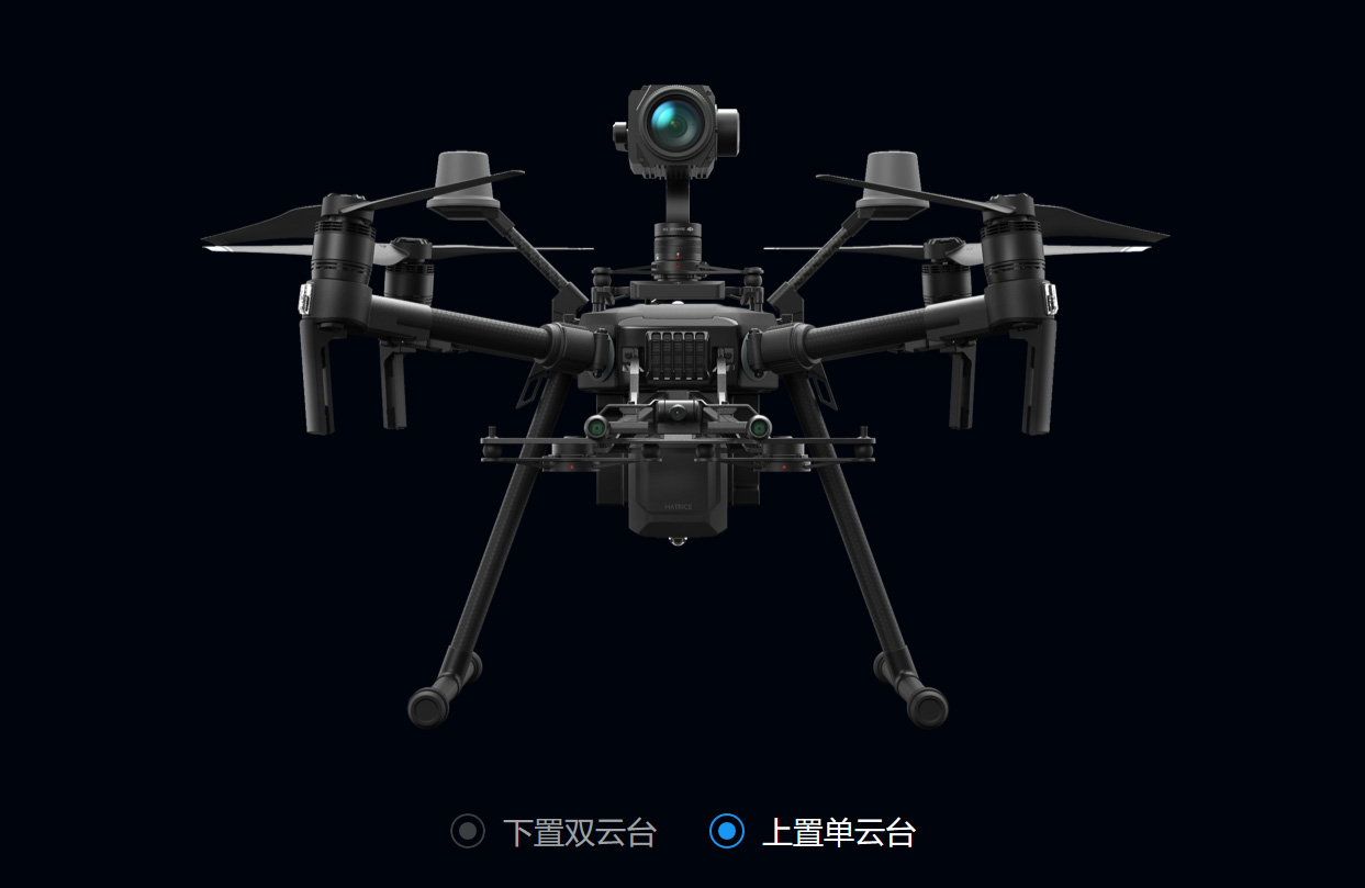 在經(jīng)緯 M200 V2 系列[7]上方配置上置云臺(tái)單品,連接飛行平臺(tái)與負(fù)載,從不同角度數(shù)據(jù)獲取更多數(shù)據(jù)。